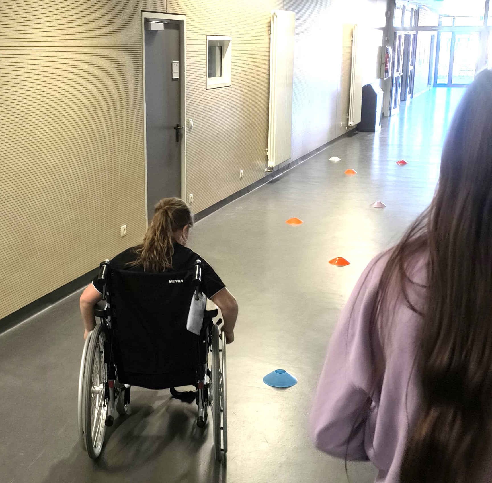 Wie ist es eigentlich, wenn man blind oder taub oder auf die Hilfe eines Rollstuhls angewiesen ist? Die Antworten auf diese Fragen durften am vergangenen Donnerstag (5.3.2026) die Schülerinnen und Schüler der Klasse 5a mit allen Sinnen erfahren. Das Profil Gesundheit und Soziales aus dem 9. Jahrgang bereitete für die Jüngeren verschiedene Stationen zum Thema „Leben mit Behinderungen“ vor. Dabei wurde u.a. ein Parcours mit dem Rollstuhl oder mit Gehhilfen überwunden, Gegenstände blind ertastet und errochen sowie Begriffe von den Lippen abgelesen. Ein kleines, aber wertvolles Projekt am Schulvormittag.